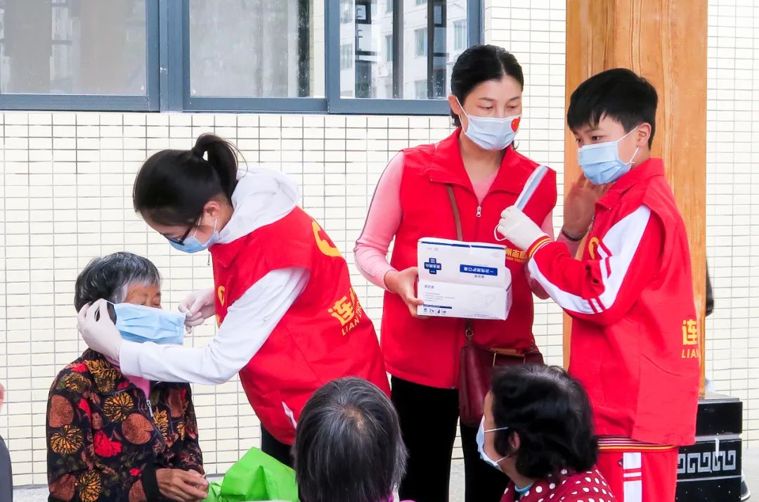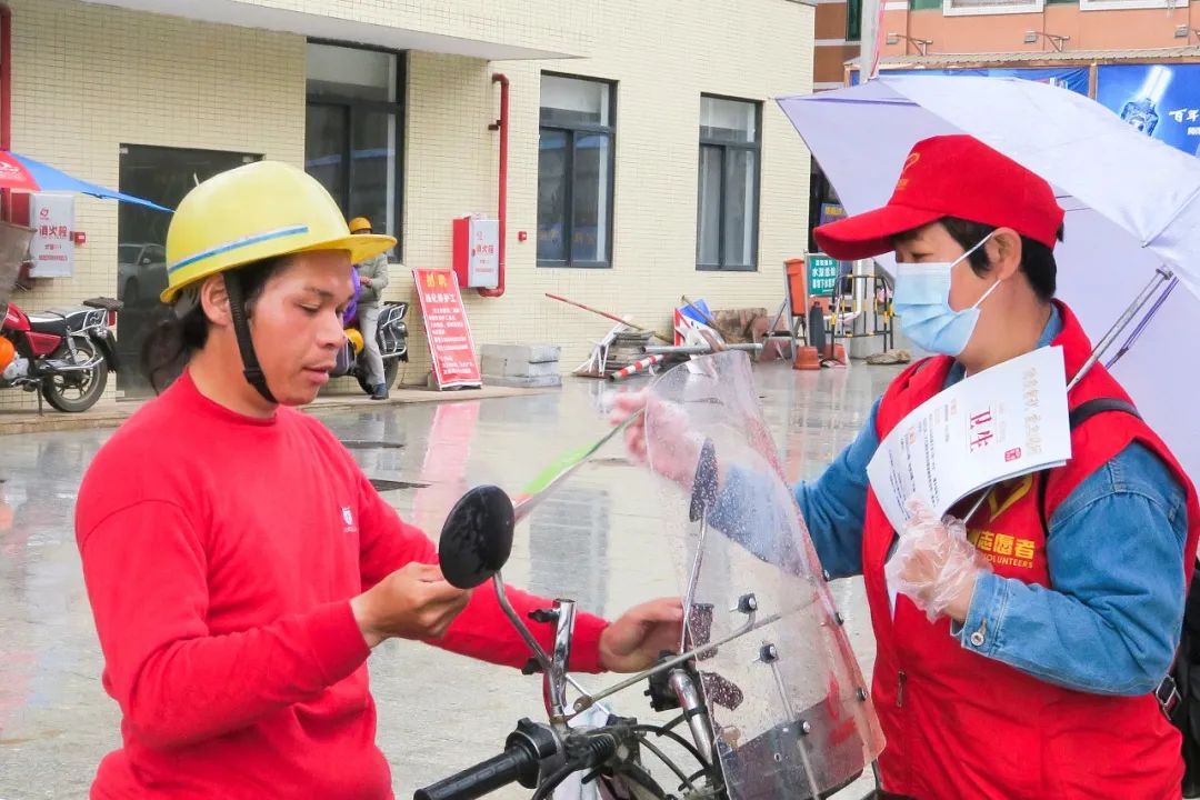 志愿者向未佩戴口罩的市民派發(fā)口罩,向市民宣傳防護(hù)知識(shí),